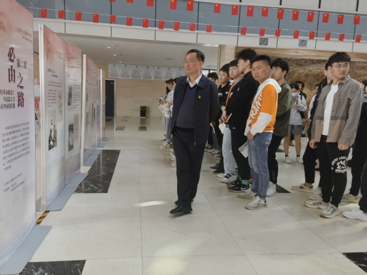 此次展览的内容包含马克思主义传播在中国主题展、忆初心启新程百年党史展两个部分,详细介绍了一个多世纪以来马克思主义在中国的传播历程,生动呈现了党在大革命时期、土地革命战争时期、全民族抗日战争时期和全国解放战争时期的壮阔图景。参观过程中,师生党员们被一张张宝贵的照片、一部部文献背后的故事而深深吸引,久久驻足。