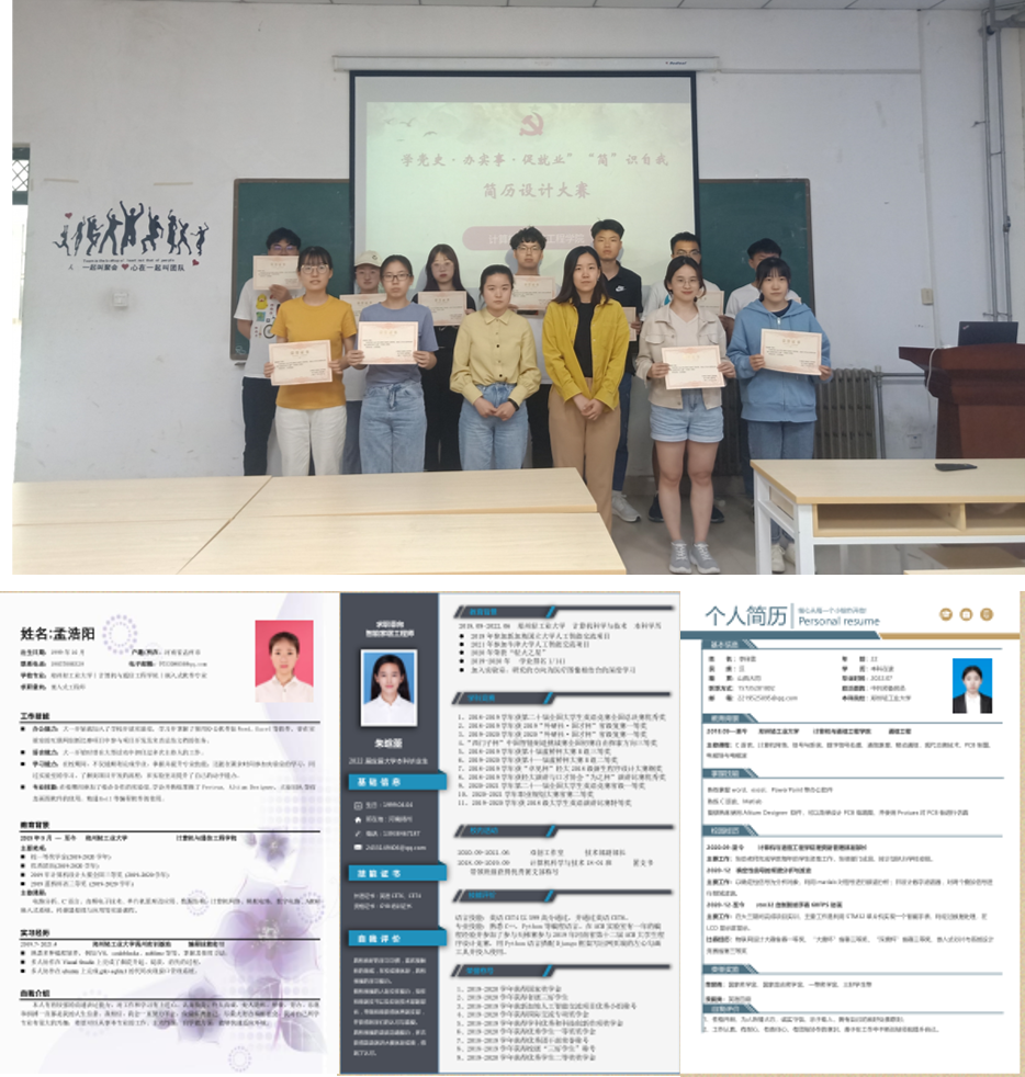 4月28日到5月8日,计算机与通信工程学院(电子信息工程学院)举办了“学党史,办实事,促就业,‘简’识自我”简历设计大赛。