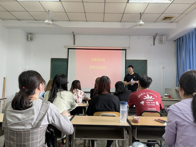 5月13日下午,外国语学院在东二楼409组织召开研究生座谈会,学院研究生辅导员李昱盛及全体研究生参会。