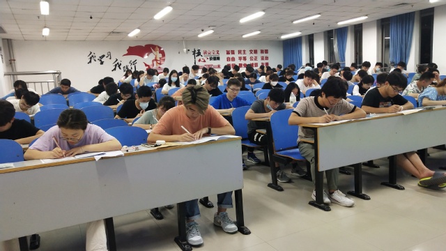 晚上19:30,考试正式开始。本次模拟考试严格按照全国大学英语四六级考试的流程进行,旨在为同学们营造一个实战模拟考场,提供一场真实严肃模拟练习,帮助同学们做好实战准备。考试过程中,同学们严格遵守考场纪律,沉着冷静,认真作答。监考人员认真负责,维持考场秩序。21:30考试结束,同学们有序离开考场。