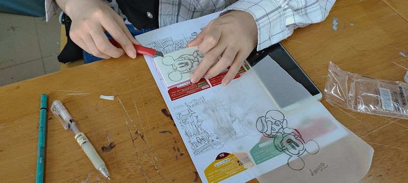 活动开始前经过相关负责人的讨论和准备,最终确定下来了将手工制作与心理健康相结合,通过刻印橡皮章表达自己内心的想法。总有一幅画面或一个人是你想要留住的样子,在活动过程中,同学们将自己喜欢或想要留住的图案或角色描绘下来印在雕刻橡皮上,用雕刻刀一点一点刻出自己想要的样子,很多第一次尝试的同学也都拿起了刻刀,刻出了属于自己的形状,在雕刻过程中,同学们暂时忘记烦恼,静下心来认真雕刻属于自己的作品。