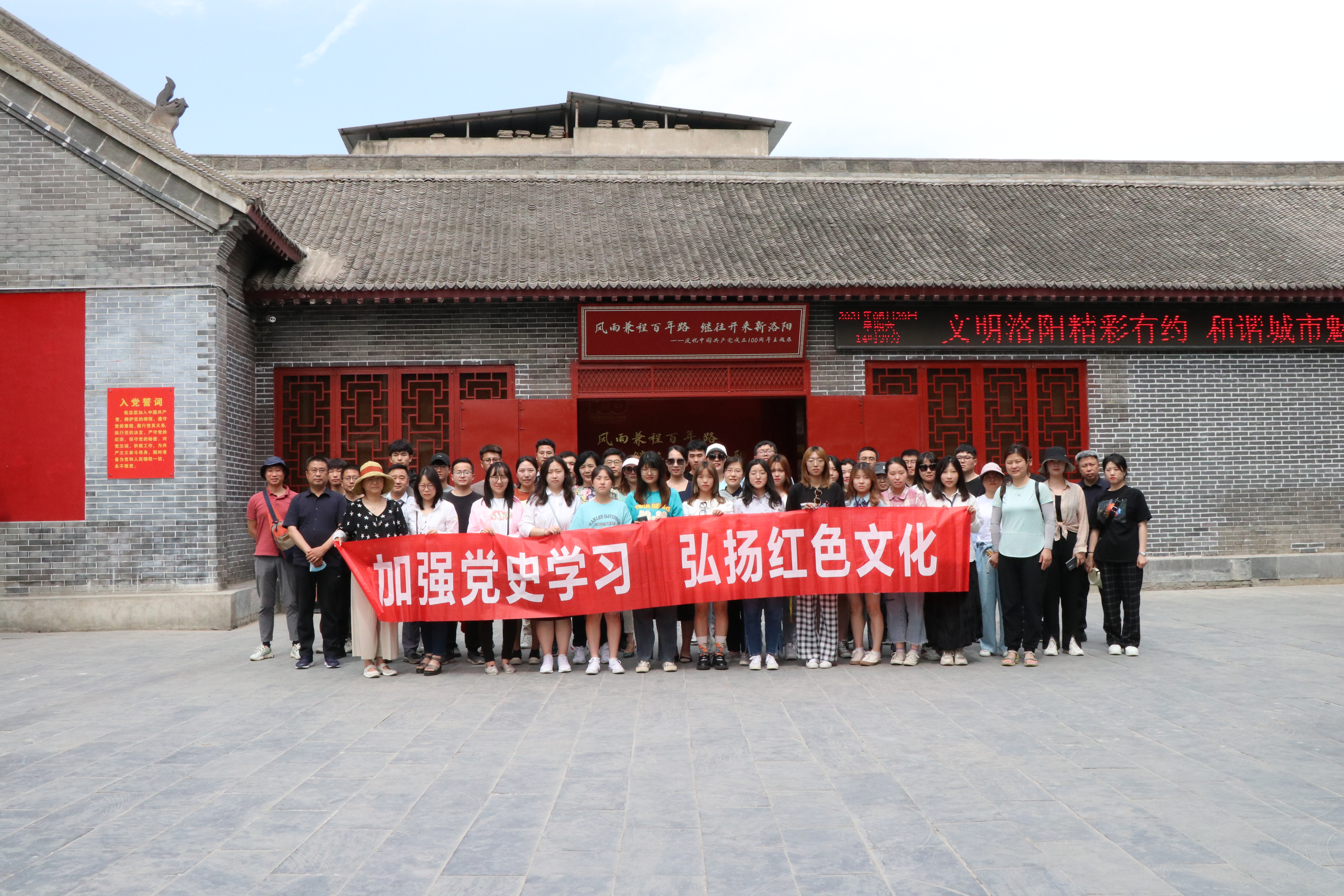 为了扎实推进党史学习教育,激发爱党爱国情怀,进一步增强师生党员的凝聚力和战斗力,5月29日,艺术设计学院组织开展党史学习教育,学院教工党员代表、本硕学生党员代表50余人前往洛阳参观学习。