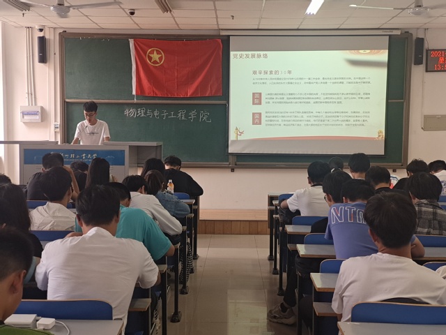 为深入开展“学党史、强信念、跟党走”主题学习教育。5月28日,物理与电子工程学院在二教704教室组织开展“百年辉煌,红心向党”微团课比赛。