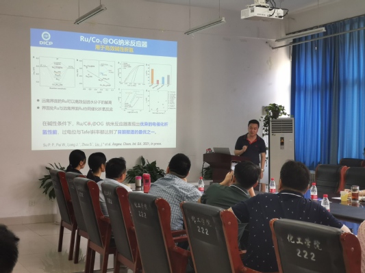 刘健研究员长期致力于纳米多孔材料的设计合成及在能源、催化相关领域的基础应用研究,在催化纳米功能材料的设计合成与应用及纳米反应器构筑等方面取得了一系列重要的成果。刘健研究员讲述了通过模拟酶、细胞而设计的微/纳米反应器,不仅可以提高反应的效率和选择性,而且这些“人造细胞”可以在温和的条件下催化化学反应。报告会讲解了微/纳米反应器的构筑,实现不同形貌和结构的纳米反应器定制;基于空间限域效应、隔离效应、协同效应等催化机制,将构筑的微/纳米反应器应用于催化理论基础研究进而认识微/纳空间中的催化反应过程,揭示纳米反应器中串联催化反应在空间和时间的耦合问题;介绍了纳米反应器在金属-硫/硒等涉及催化反应电化学电池中的应用和重大疾病早期诊断的应用研究。