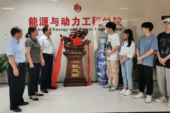 座谈会前,2021届毕业生向学院赠送了象征一帆风顺的纪念帆船。