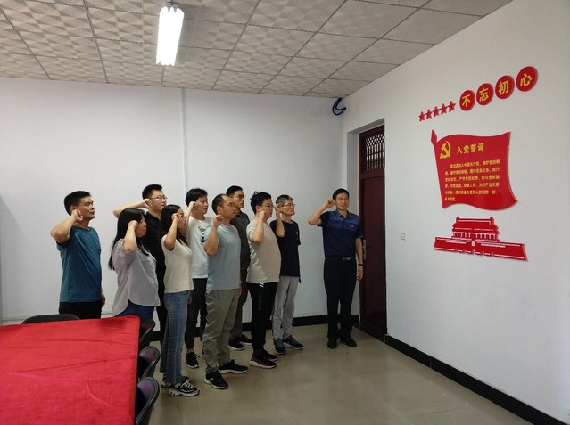 交流结束后,全体党员在岳永胜的带领下重温了入党誓词。