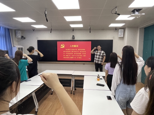 为深入进行党史学习教育,塑造党员的政治品格,弘扬红色精神,6月24日下午,外国语学院学生党支部在东二楼开展“红船精神”主题党课活动,2021年度新发展学生党员参加,活动由学生第一党支部书记李昱盛老师主持。