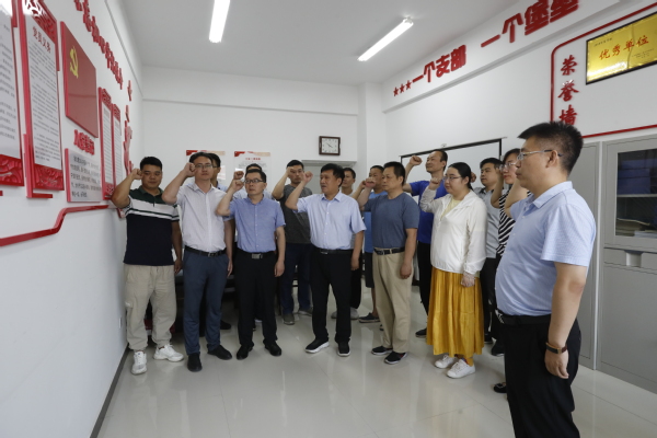 活动首先在支部书记张超钦的带领下,面对鲜红的党旗,党员同志高举右手庄严宣誓,重温对党忠诚的誓言,表达为党的事业奋斗终身的决心。