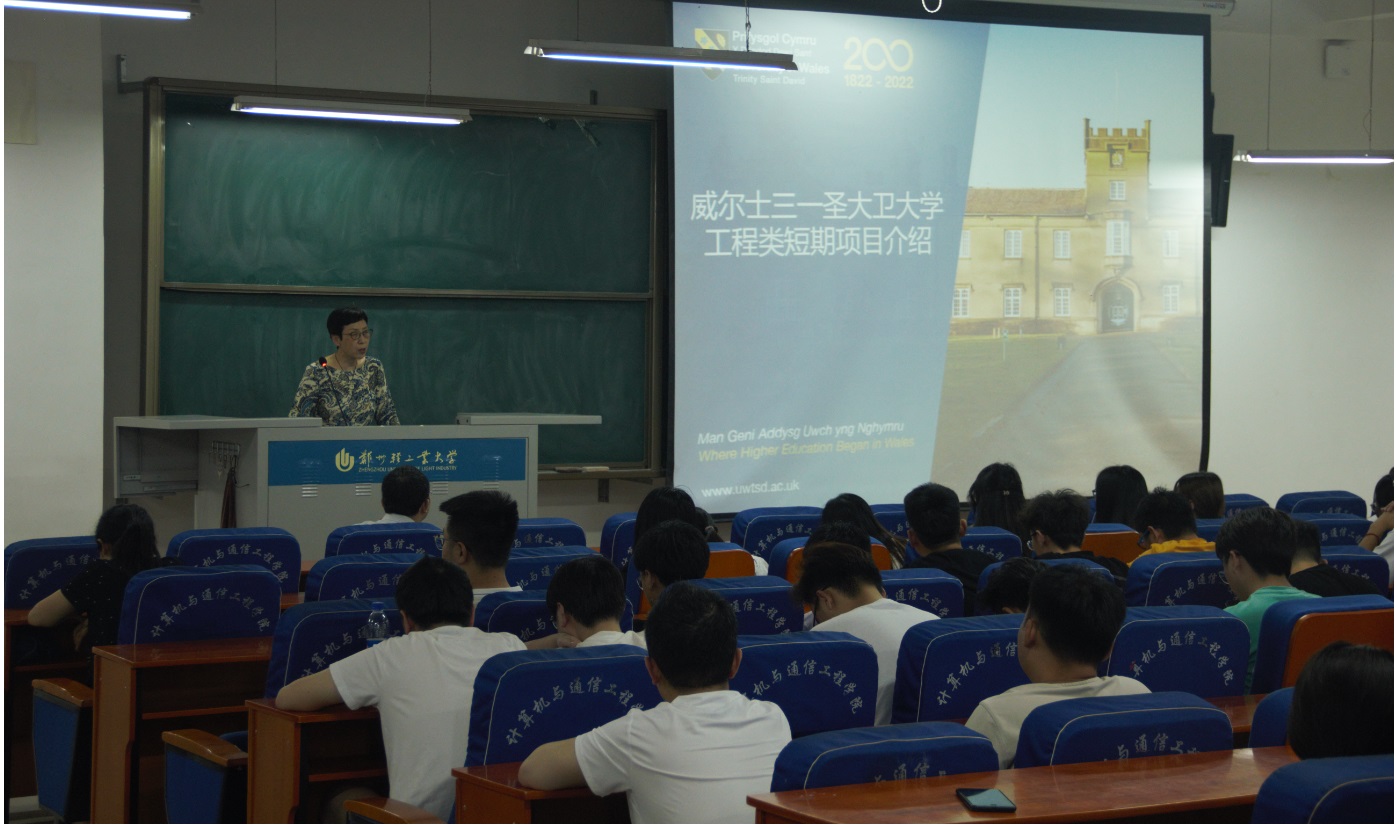 会上,谈处长首先为大家介绍了有关英国威尔士三一圣大卫大学的学校基本情况以及该校的综合实力排名情况,以及关于该校举办的工程类短期项目内容以及课程安排。随即又为研究生出国访学与联合培养博士生项目做了相关讲解。谈处长强调多参与国际项目不但可以拓宽专业视角,提升科研能力,而且对英语表达水平的提升也颇有益处。她还建议研究生们要多关注学校发布的国际交流项目的相关通知,解读了学校的相关资助政策。最后,朱院长鼓励同学们要抓住学习机会,利用学校提供的丰富资源来提升自己的硬实力。