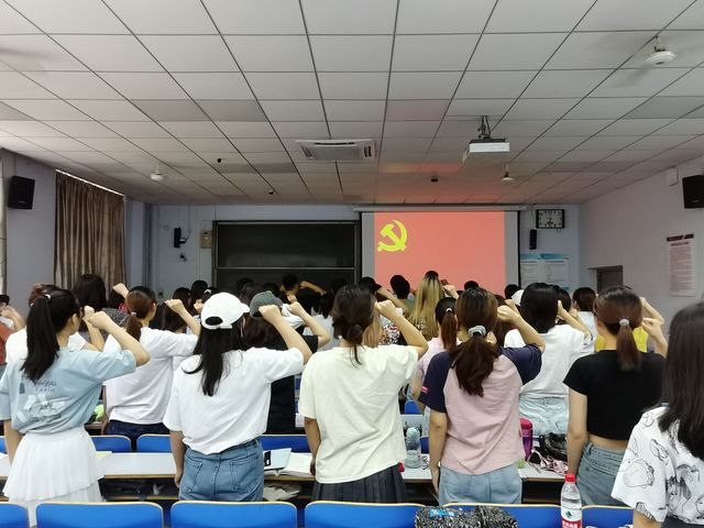 观看活动结束后由外国语学院学生第二党支部组织委员张衡作为领誓人带领全体与会人员重温入党誓词,加强党员的初心使命教育。