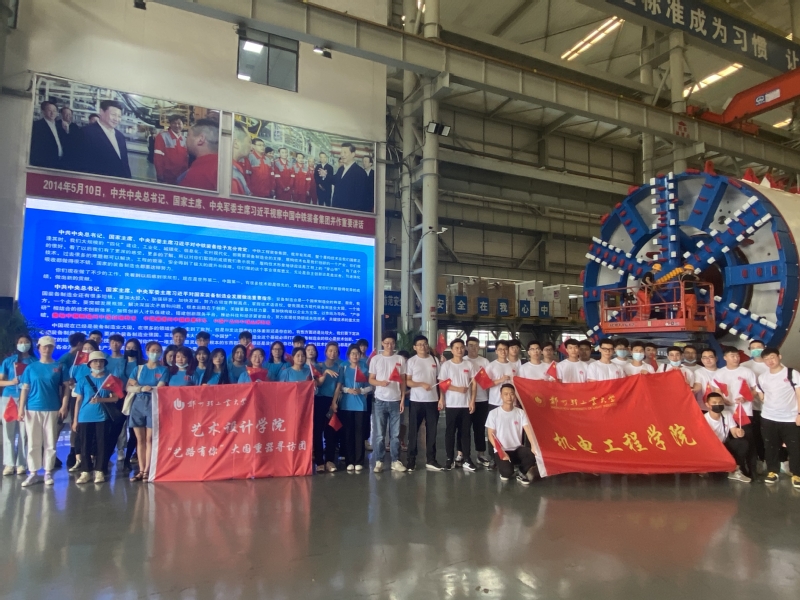 为了进一步深化党史学习教育,激发广大学生的爱国爱党的热情,2021年7月7日,艺术设计学院联合机电工程学院一同到中铁工程装备集团有限公司郑州盾构总装车间进行参观学习。艺术设计学院学工办主任霍庆媛老师、机电工程学院研究生办公室副主任李灏萱老师以及两学院入党积极分子和本硕学生代表共计60人参加了活动。