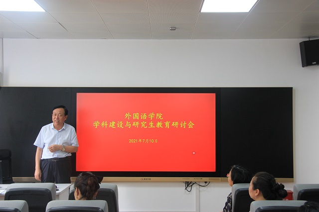 7月10日上午,外国语学院在东二楼209召开学科建设与研究生教育研讨会。研究生处王国庆处长、学院中层、系部中心主任、骨干教师以及全体硕士研究生导师参加了会议,会议由边铀铀副院长主持。