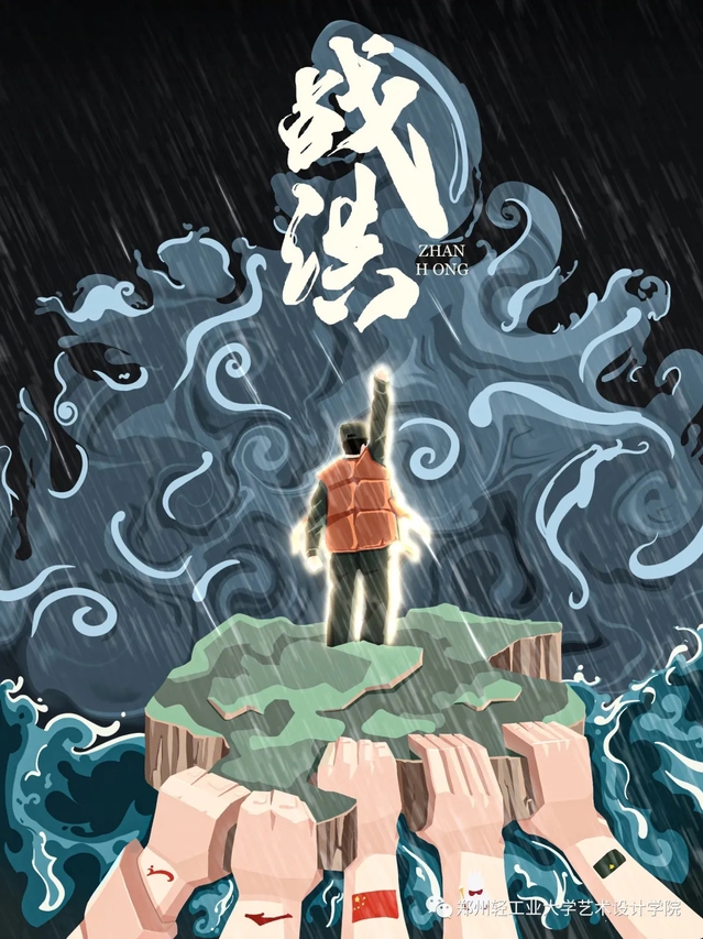 7月20日,郑州等地遭受暴雨侵袭,受灾严重。面对自然灾害,受灾群众众志成城,守望相助,来自全国各地的救援也给予了灾区巨大的支持,中原大地上再次呈现了团结一心、共克时艰的动人一幕。在这一背景下,艺术设计学院的广大师生行动起来,开展了防汛救灾主题公益设计作品创作征集活动,用彩色的笔触勾勒出了一幅幅“洪水无情人有情”的感人画卷。