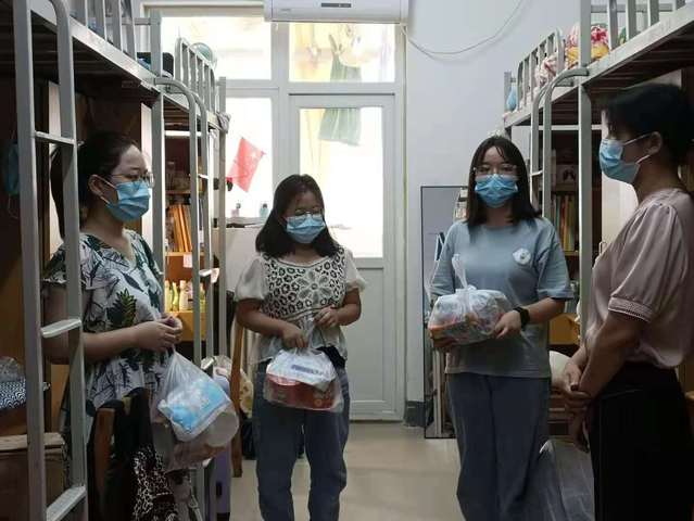 在宿舍,学院老师为每位学生发放了防疫用品口罩和火腿肠、方便面等食品。深入细致地了解了他们在宿舍住宿、饮食等情况,详细询问了同学们在生活、学习的困难情况,还提醒同学们要注意疫情防控、防暑降温和人身安全,保持室内清洁以及日常通风,有困难及时向学院反映。在教室,老师们仔细了解学生考研和法考复习情况,提醒同学们学习要劳逸结合,合理安排时间,掌握科学方法。大家纷纷表示一定会严格遵守学校疫情防控要求,专心学习,积极备考,争取取得优异成绩。