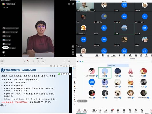 首先,按照学校2021年秋季学期“按时开学,网上报到,在线授课,暂不返校”的原则,各班辅导员督促同学们进行群接龙线上报到,了解掌握同学们是否具备上网课的条件,同时提醒同学们做好自我防护,调整作息规律,以积极饱满的精神姿态投入新学期的工作学习中。随后,班主任要求大家务必认真学习线上课程内容,及时完成任课老师发布的学习任务,课下认真复习,保证学习效果。最后,辅导员就学校疫情防控工作要求做出重点强调:任何同学不得提前返校,配合做好每天日报告打卡,并随时关注老师和班长发布的重要信息。
