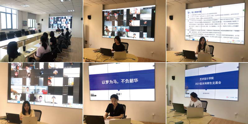 为帮助2021级本科新生了解学院基本情况,尽快适应即将到来的网上授课环节,9月7日,艺术设计学院在东四楼307会议室,通过视频会议形式,面向全体2021级新同学召开首次师生见面会。学院党委副书记贾红雨、全体辅导员老师参加了线上见面会。