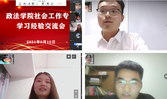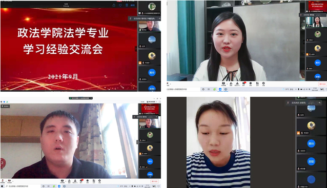为了帮助2021级新生尽快适应大学生活,明确学习态度、树立学习目标,9月9日-10日,政法学院分专业举办了学习经验线上交流会。学院党委副书记刘放美、各系系主任、新生辅导员匡竞、李昊轩和2021级全体同学参加交流会。交流会邀请了各专业的优秀毕业生和在校生做分享。