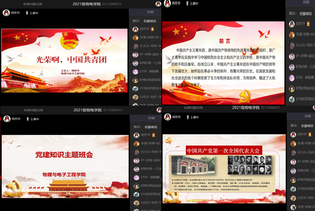 此次线上主题班会加深了2021级新同学对党团知识的了解,明确了身上承担的使命和责任,激励他们坚定理想信念,勤奋刻苦学习,练就过硬本领,展现青春底色,做有理想、有本领、有担当的新时代青年。
