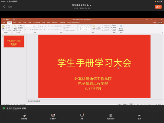 为了切实抓好学生日常教育和管理工作,进一步让新生了解校纪校规,规范学生的日常行为,计算机与通信工程学院(电子信息工程学院)于9月16日召开学生手册学习大会,2021级全体新生共1700余名同学参加此次会议。