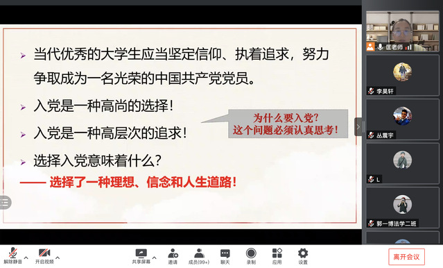 9月16日晚,政法学院举办2021级新生“志存高远 一心向党”入党知识讲座,政法学院组织员匡竞和2021级全体本科生、研究生参加。