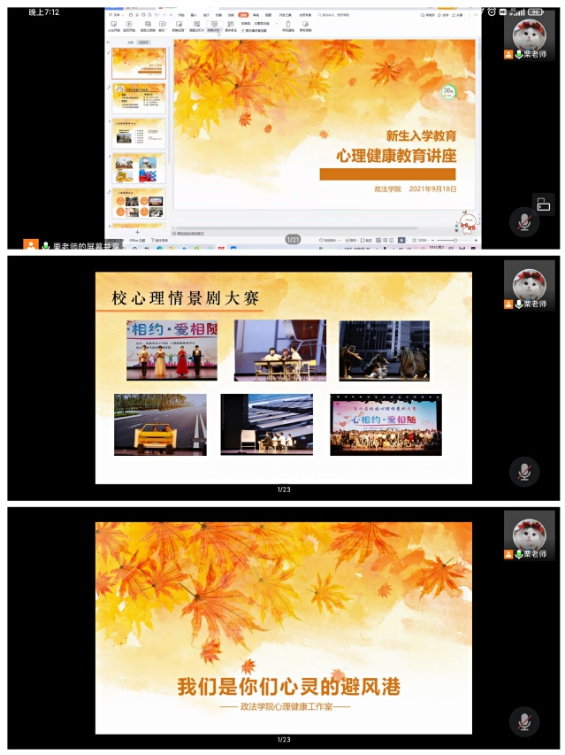 为更好的帮助2021级新生适应大学生活,做好心理转变阶段的引导教育工作,提升新生的心理素质,9月18日,政法学院召开了新生入学教育之心理健康教育讲座,学院2021级全体新生参加了此次活动。