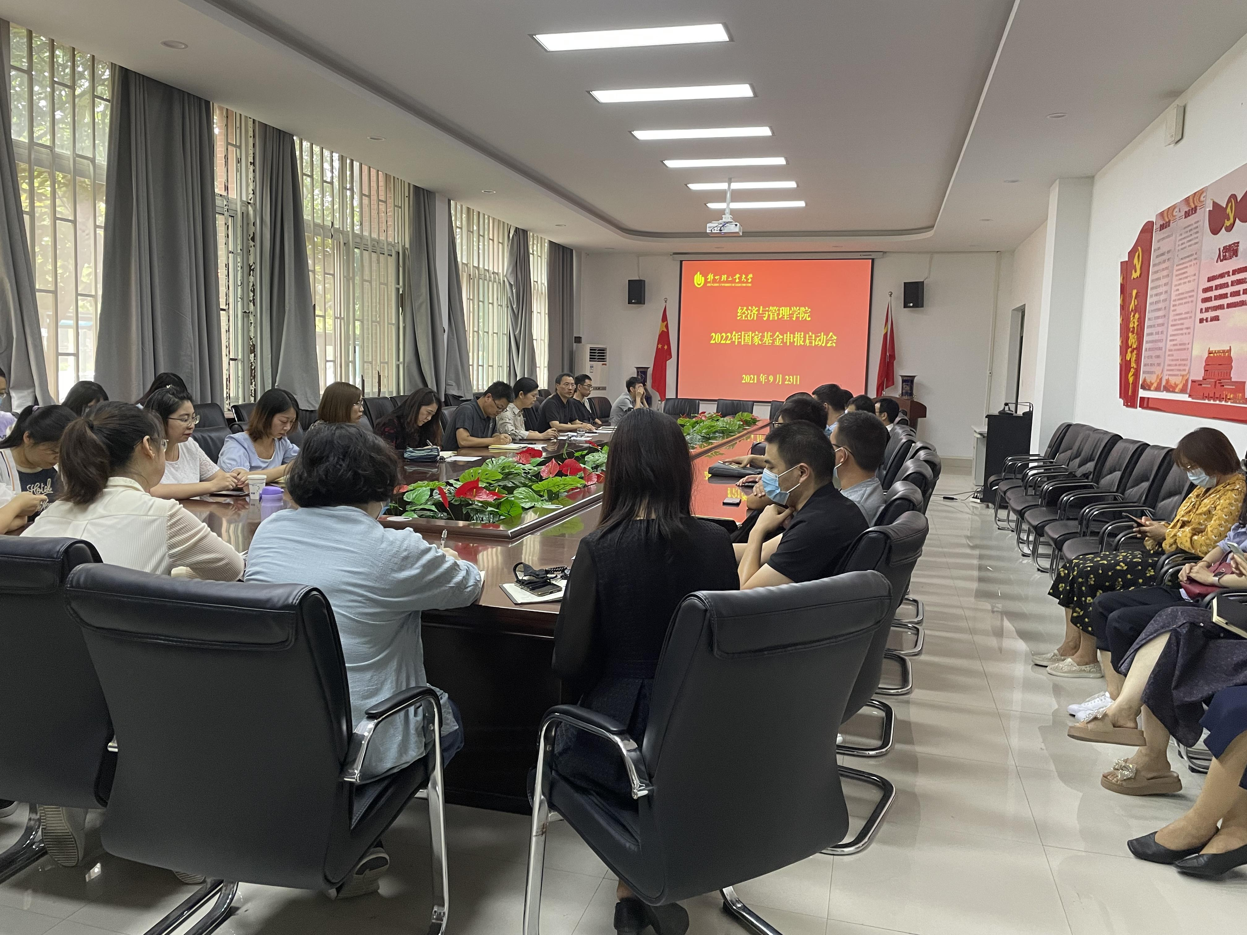 9月23日下午,经济与管理学院2022年度国家基金申报启动会在经管楼116室召开。学院党委书记张云超、院长刘珂、副院长符加林、张梅、安慧及学院教师等30余人参加了本次会议。会议由副院长符加林主持。