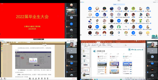9月27日下午,计算机与通信工程学院(电子信息工程学院)通过腾讯会议线上召开2022届毕业生大会。学院党委副书记王艳军、就业专职老师、毕业班辅导员及2021届全体毕业生参加了此次会议。