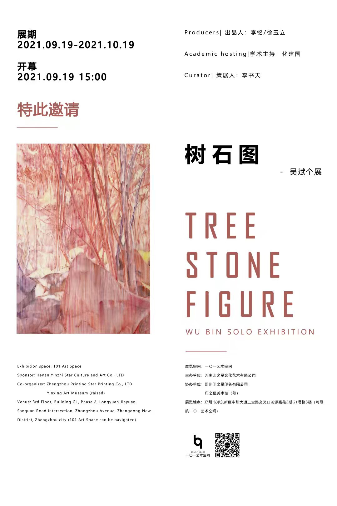 “树石图—吴斌绘画作品展”于9月19日下午在郑州一0一艺术空间举办。吴斌为艺术设计学院绘画系副教授。此次展出的三十余幅作品为吴斌老师近两年在教学之余的新作,是以自然风景中的“树石”为主题,以纸本水墨为材料展开的系列创作,展现了吴斌老师对创作主题与材料的最新研究与拓展,以及对传统绘画精神的当代性转换的思考与尝试。