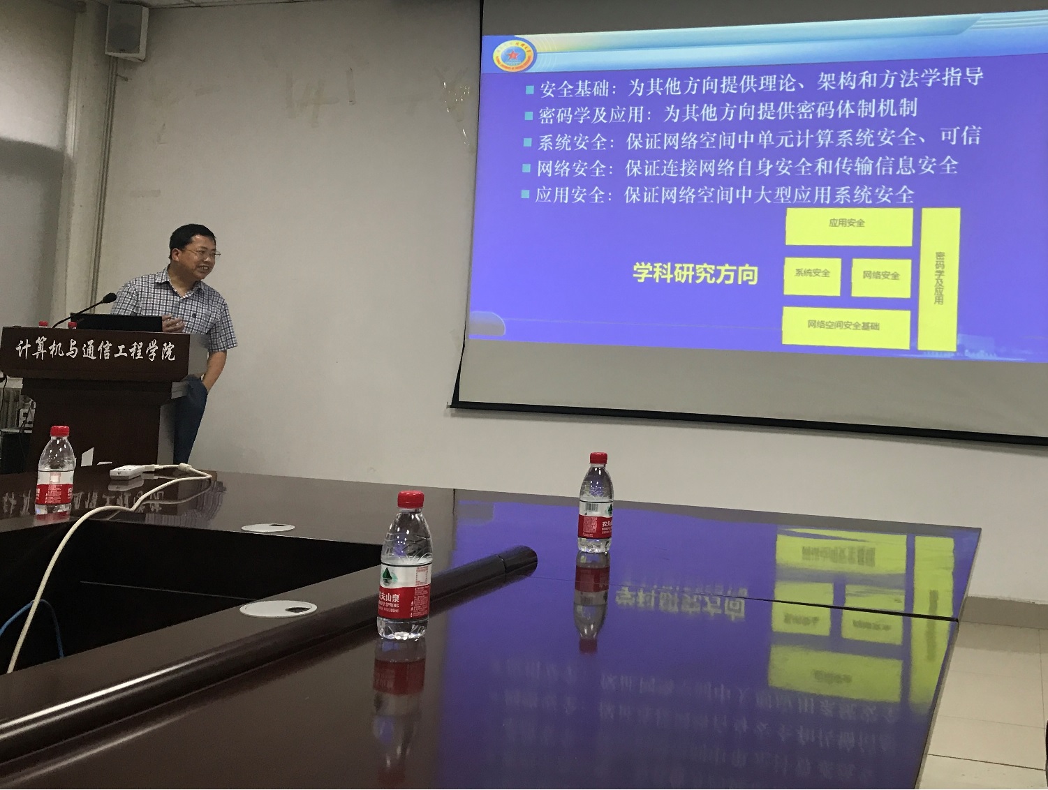 7月10日下午,应计算机与通信工程学院的邀请,国防科技大学苏金树教授在计算机与通信工程学院213会议室做了题为“网络空间安全学科专业建设”的学术报告。报告会由计算机学院副院长张秋闻主持,网络工程系骨干教师和全体研究生到场聆听。