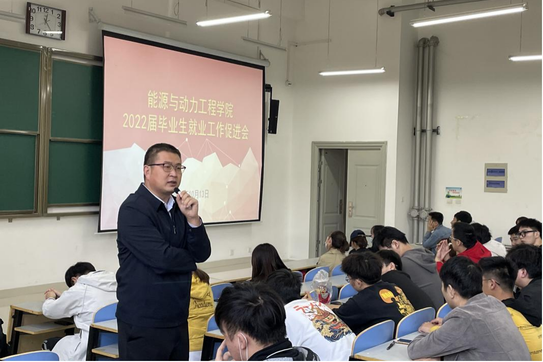 为进一步提高毕业生对就业形势的认识,解答毕业生就业相关问题,促进毕业生高质量就业,2021年10月13日,能源与动力工程学院在工程楼109室召开2022届毕业生就业工作促进会,会议由就业负责老师刘艾婧主持,学院党委副书记李俊丰、全体辅导员、全体2022届毕业生参与本次会议。