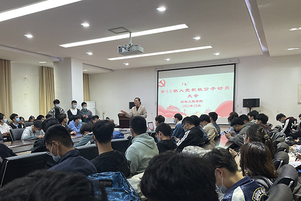 2021年10月14日中午,机电工程学院在西三楼215召开了第66期入党积极分子培训班动员大会。会议由我院副科级组织员徐莉老师主持,本期培训班的入党积极分子参加了此次大会。