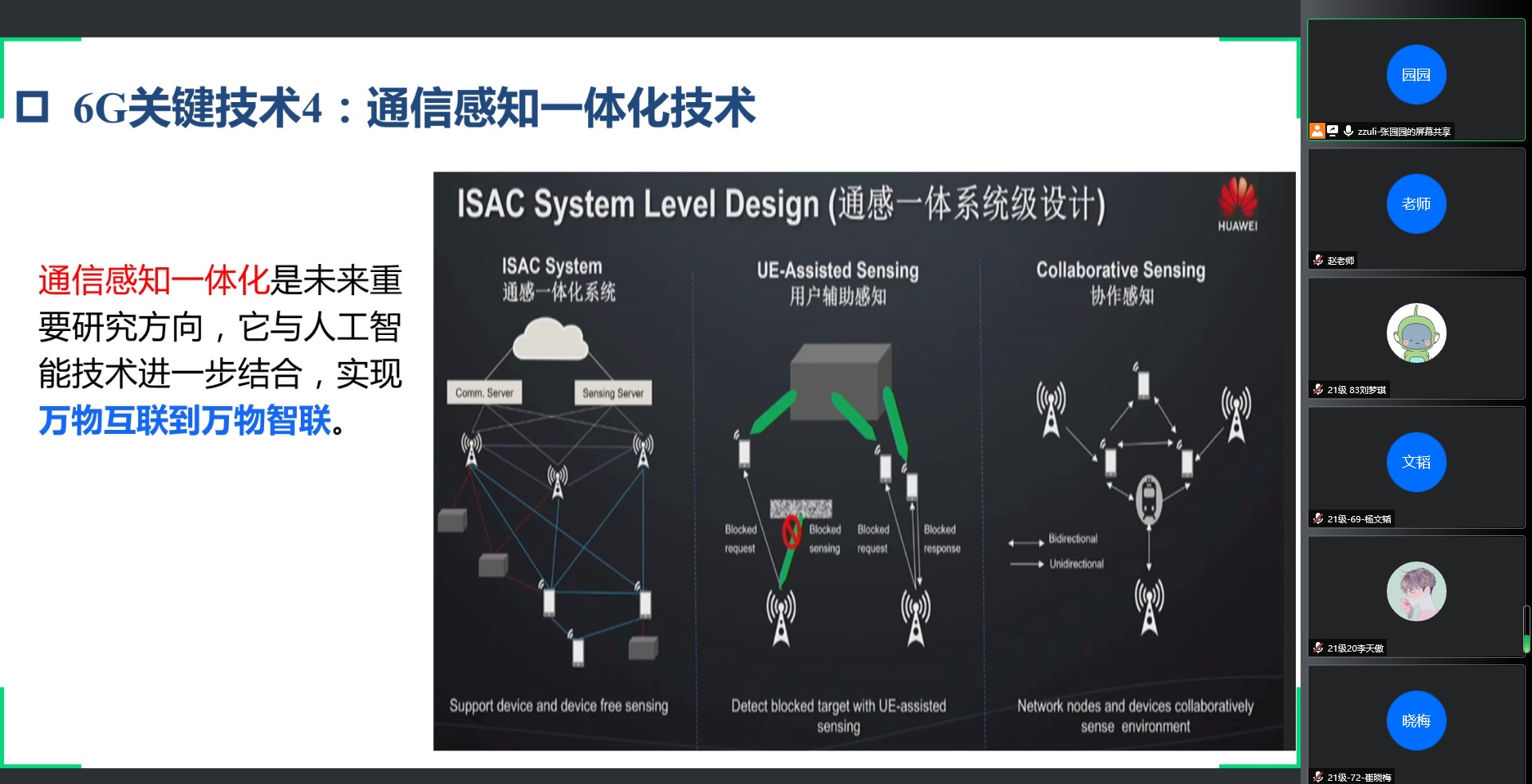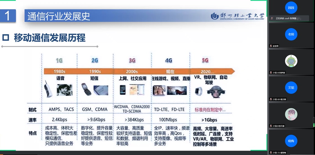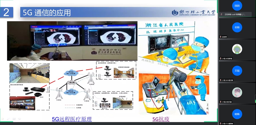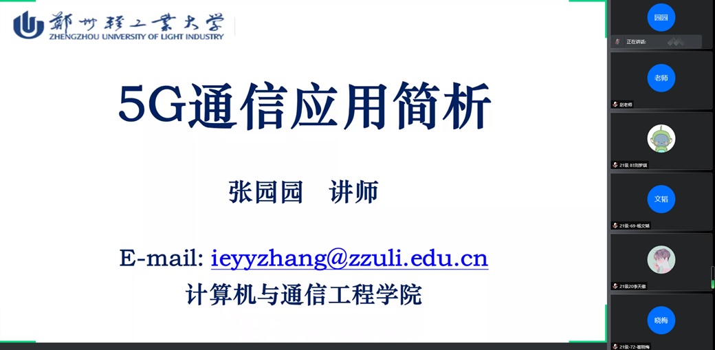 10月14日下午,计算机与通信工程学院张园园博士通过线上做 “5G通信应用简析”的学术报告,2021级全体研究生和2019、2020级部分研究生参加了此次报告。