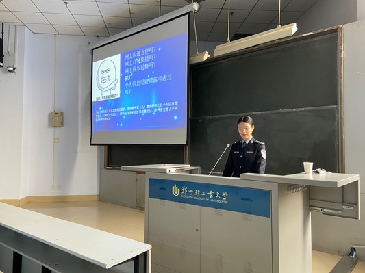 此次活动邀请郑州市公安局网监支队网络安全等级保护专家寇圆圆警官,为广大新生讲解网络安全知识,主要内容包括网络安全现状、电信诈骗的举例、网络安全形式与挑战、网络安全的基本认知、校园网络的现状与防控以及如何对个人信息进行自我保护等。寇警官为同学们分析了几起电信诈骗的典型案例并分析了中国互联网发展状况、网络安全的特点、影响网络安全的主要因素,向同学们介绍了网络诈骗的主要形式、大学生常见的网络陷阱等,让同学们明白了网络安全威胁无处不在,提醒同学们提高网络安全意识的重要性,并督促大家健康文明使用网络,增强网络安全警惕性。