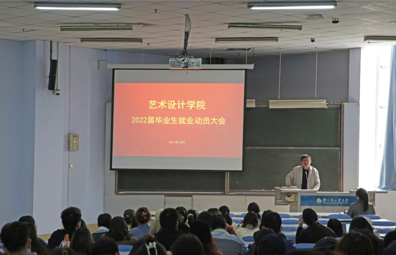 为进一步做好2022届毕业生就业工作,帮助毕业生熟悉就业政策、了解就业形势、把握就业机会,10月26日下午,艺术设计学院在东风校区教三楼202宣讲室举行2022届毕业生就业动员大会,院团委书记、毕业班辅导员孙丰、学工办主任霍庆媛、就业专职辅导员陈梦涵以及全体毕业生参加了本次会议。