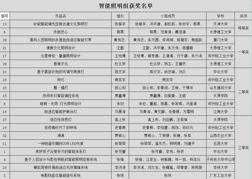 第二届(2021)中国大学生智能照明和智能穿戴创新创业大赛由山西省教育厅、山西省文化和旅游厅的指导,由山西省照明协会、广东光亚照明研究院、山西省智能数字文化旅游产业研究院共同主办,太原理工大学承办。“学习强国”平台、人民日报、新华网等权威媒体的宣传报道了此次活动。本次大赛共有来自全国102所高校的146个参赛项目参与了初赛,经过近4个月的激烈角逐,40所高校的55个项目进入决赛,最终,40个项目脱颖而出,获得本次大赛的奖项。