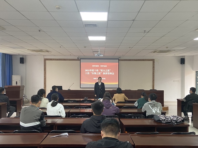 11月5日中午,物理与电子工程学院在四教楼503会议室举办了2021年度十佳“轻大之星”、十佳“自强之星”演讲答辩会,学院党委副书记李玲、各年级辅导员及学生代表参加了此次活动。