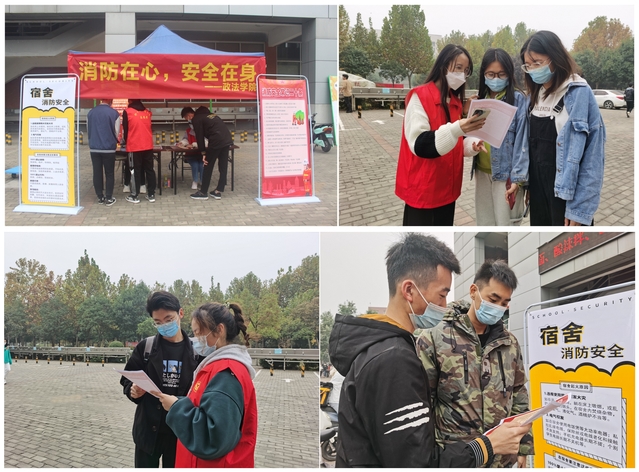 在全国消防安全月来临之际,为切实增强全体师生的消防安全意识、提高消防安全素质,11月6日,政法学院在清苑餐厅广场举办了以“关注消防、平安你我”为主题的消防宣传活动。