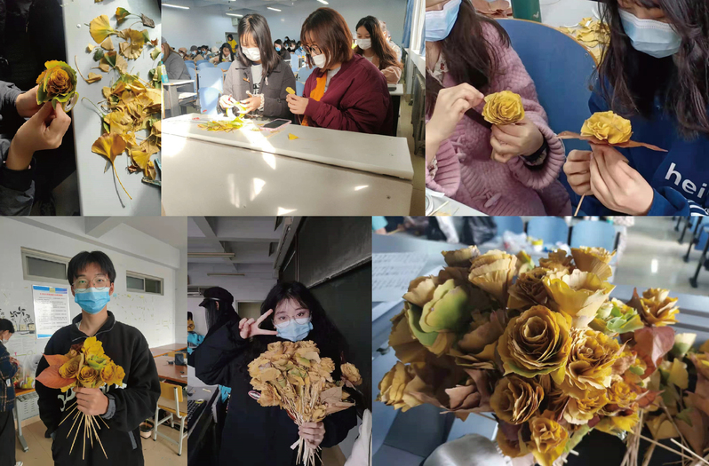 活动开始前经过相关负责人的讨论和准备,最终确定将手工制作与心理健康相结合,通过收集落叶,将其制作成花朵,以留下秋天最后的浪漫色彩。活动开展过程中同学们充分发挥动手能力,一片片树叶再同学们的手上翻飞,起舞,一次次的裁剪、粘贴、组合,勾勒出了秋天的模样,之后大家将他们放在画框中,组成了一道亮丽的风景,也留住同学们心中秋天的美好。同学们在创作作品的同时,通过交流找到了朋友,通过手工制作舒缓心中的焦虑与压抑,打开心中的郁结,体会了心灵的放松。