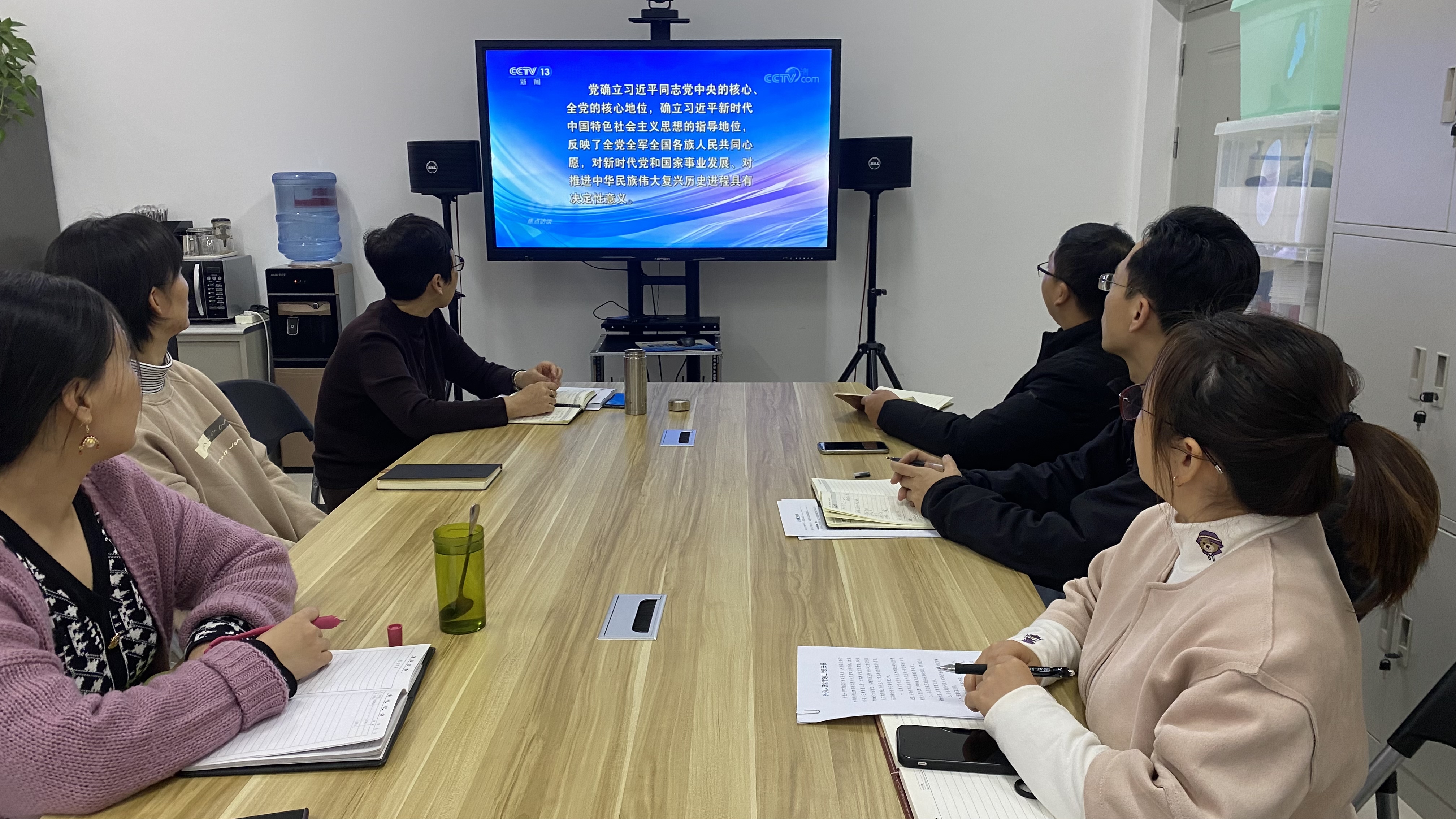 与会人员一同观看了《百年奋斗启新程 非凡领航 非凡成就》专题片:党的十九届六中全会取得了丰硕的重要政治成果。全会审议通过的《中共中央关于党的百年奋斗重大成就和历史经验的决议》,是党的历史上第三个历史决议;进一步概括习近平新时代中国特色社会主义思想的核心内容,以中国特色社会主义新时代为重点,总结了党的十八大以来的原创性思想、变革性实践、突破性进展和标志性成果;《决议》强调“两个确立”,对新时代党和国家事业发展、对推进中华民族伟大复兴历史进程具有决定性意义。