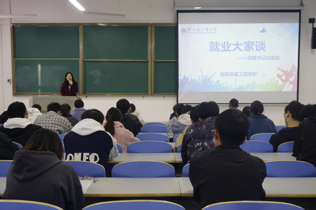 近日,建筑环境工程学院举办第八期【就业大家谈】“团委书记谈就业”,建筑环境工程学院团委书记寇誉元担任主讲人,围绕就业形势、国家政策、择业观念、基层就业等方面进行了具体讲解,并耐心、细致地回答了同学们提出的问题。学院各年级学生代表近一百人参加此次活动。