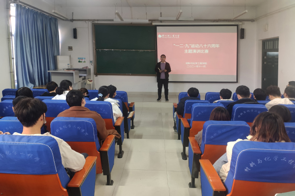 时代的步伐坚定向前,历史的声音仍在耳边。为纪念一二·九运动八十六周年,弘扬“12.9”爱国主义精神,12月6日,材料与化学工程学院在化工楼218举办了主题演讲比赛。学院专职团干杨亚皇老师、各年级学生代表参加本次活动。