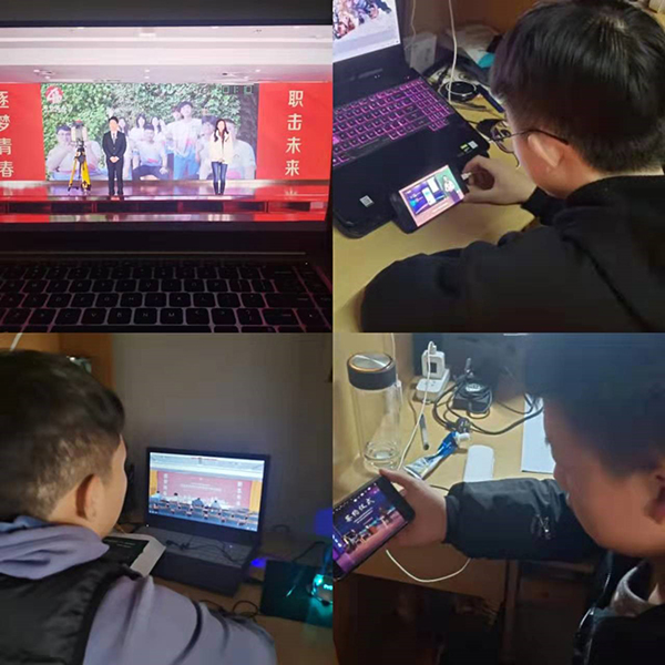 同学们通过在会议室、宿舍、自习室的观看方式,观看了此次直播。经学校选拔推荐,机电工程学院2020级曹琳悦同学参加了此次大赛。比赛中参赛选手们的职业生涯规划设计结构完整、逻辑清晰、条理清楚、详略得当、重点突出,职业生涯目标制定贴切合理,演讲过程富有感染力,选手们激情满怀地讨论自己的人生规划,用他们饱满的激情和精彩的PPT描绘着属于他们未来的蓝图。此次大赛极大地激发了同学们的职业规划热情,同学们纷纷表示要尽早确立职业目标并为之努力。
