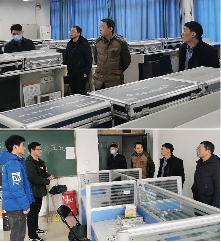 2022年1月12日上午,计算机与通信工程学院(电子信息工程学院)党委书记宋文军、院长金保华、党委副书记王艳军和副院长朱付保等一行巡查了计算机与网络实验室、电子与通信实验室和研究生专业实验室等教学科研实验室,看望并慰问因疫情滞学留校的研究生。