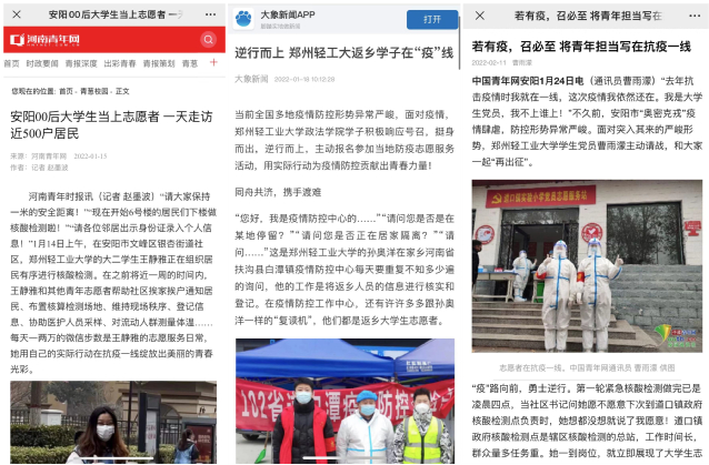 中国网、河南青年时报等媒体报道政法学院返乡志愿者战“疫”事迹