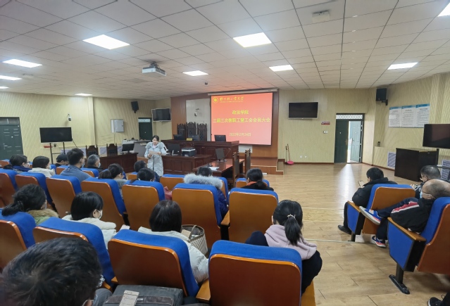 2月24日下午,政法学院在科学校区活动中心楼113室召开三届三次教职工暨工会会员大会,学院全体教职工参加会议。会议由学院党委书记宋德涛主持。