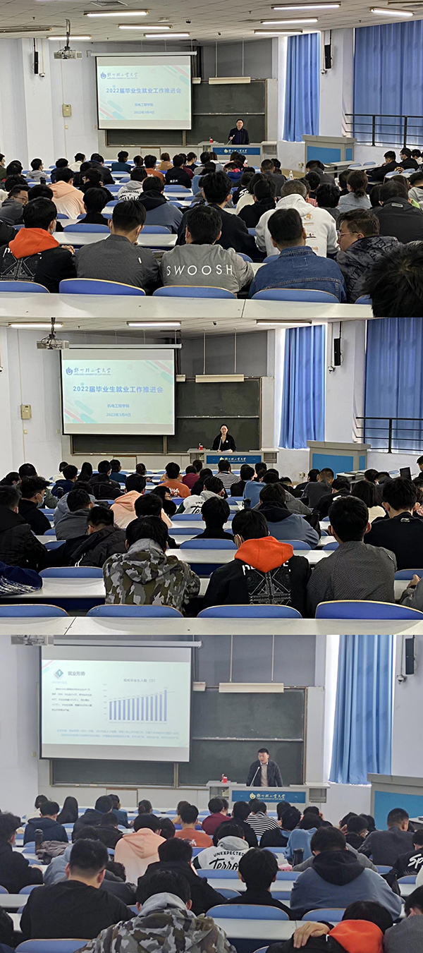 3月4日上午,机电工程学院在教三楼202教室召开了2022届毕业生就业工作推进会。学院院长罗国富、党委副书记孙琳、就业专职老师吕志斌、毕业班辅导员及2022届全体毕业生参加了此次大会。