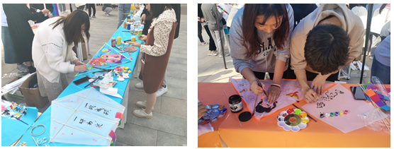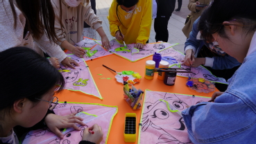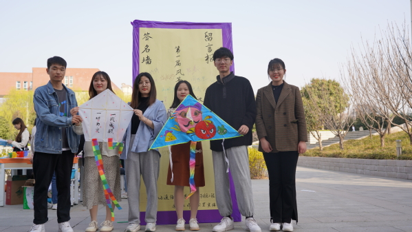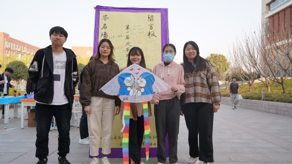 本次活动流程包括风筝材料包领取以及制作、签名墙合照、放飞风筝三个部分。工作人员为同学们准备了三类风筝的材料包,充分考虑到了同学们的不同需求,准备了空白风筝、填色风筝、异形风筝等。活动期间,同学们慧心巧思,优秀作品层出不穷:有的同学在风筝上题“一研为定,一战成硕”的字样,寄托了考研必胜的决心;有的同学手绘出憨态可掬的“冰墩墩”,为冬奥健儿们喝彩;还有的同学画出《海绵宝宝》中的三位卡通人物,体现出他们内心的童真……同学们举起自己满意的作品,站在签名墙旁,用相机记录下美好的时刻。活动最后,大家牵着手中的风筝线,奔跑在春日的午后,放飞这专属的快乐。