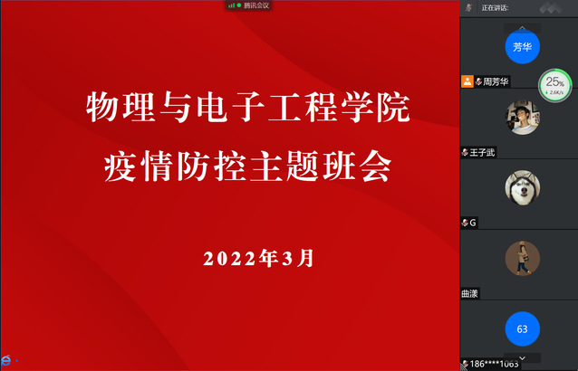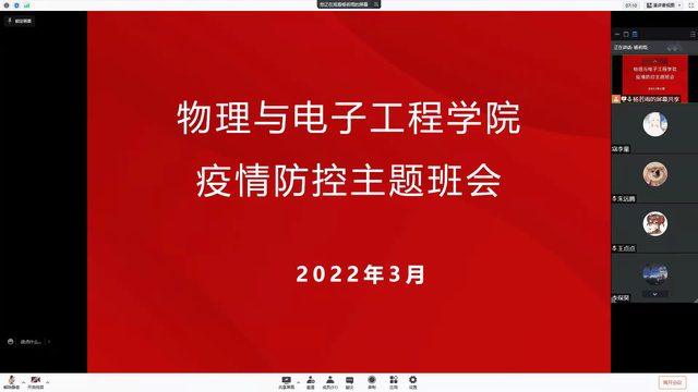 3月17日,物理与电子工程学院全体辅导员组织召开了疫情防控线上主题班会。