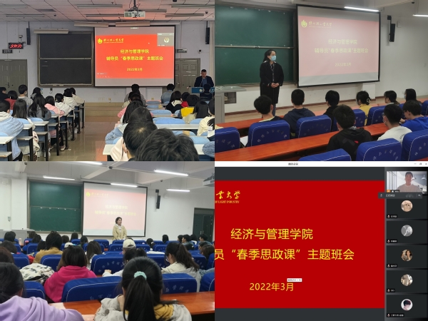 为切实加强学生思想政治教育和价值观引领,经济与管理学院各辅导员于3月16日-20日以班级为单位召开了辅导员“春季思政课”主题班会。