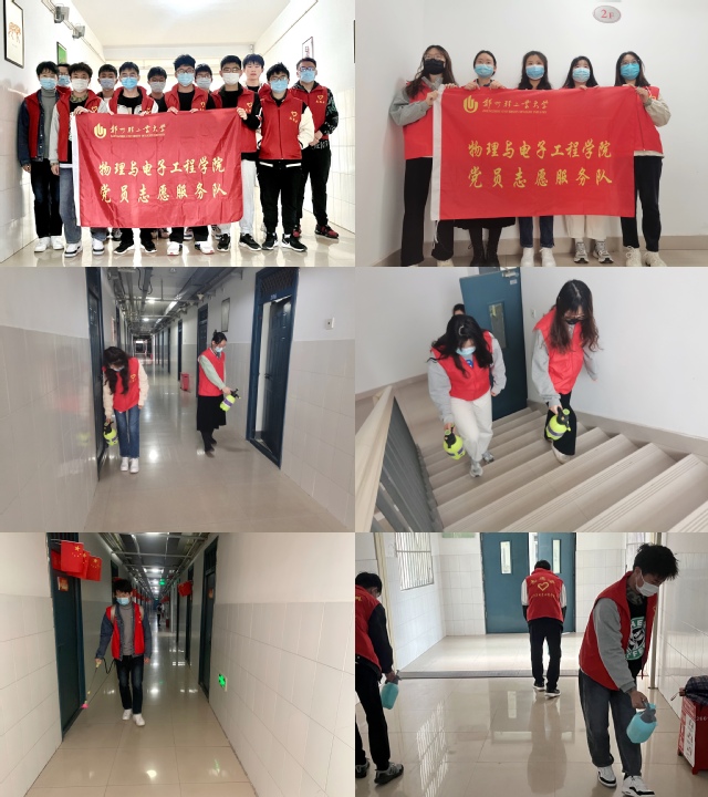 为有效筑牢校园疫情防控防线,确保学生宿舍环境安全,3月20日上午,物理与电子工程学院学生第二党支部学生党员在科学校区宿舍楼开展“学雷锋精神,做防疫先锋”志愿服务活动。